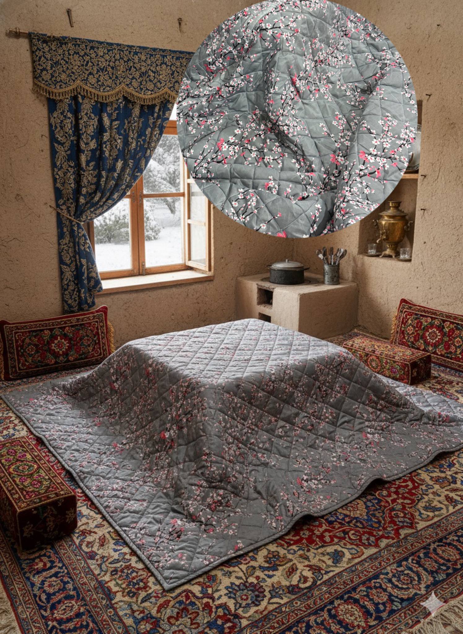 دوخت پنبه دوزی کامل لحاف که باعث جلوگیری از گوله گوله شدن لحاف کرسی میشود